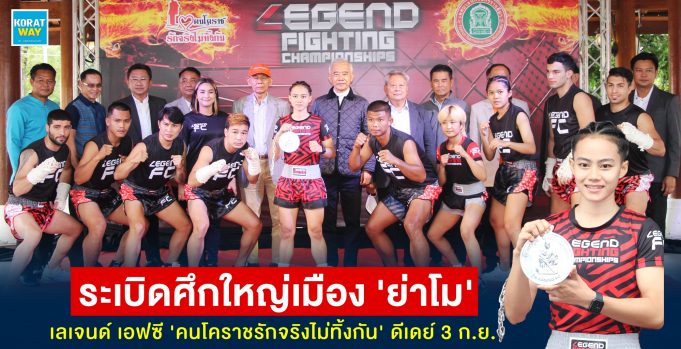 เลเจนด์ อารีนา กลุ่มบริษัทพราว บลูพอร์ต หัวหิน ร่วมกับ เทศบาลนครนครราชสีมา และ ศูนย์คนโคราชรักจริงไม่ทิ้งกัน จัดการแข่งขันกีฬามวยไทย และศิลปะการต่อสู้แบบผสมผสาน (MMA) รายการ เลเจนด์ เอฟซี “คนโคราชรักจริงไม่ทิ้งกัน” ณ เวทีมวยชั่วคราว บริเวณลานอนุสาวรีย์ท้าวสุรนารี (ย่าโม) ในวันที่ 3 ก.ย.นี้ พร้อมเอาใจแฟนหมัดมวย ยิงสดให้รับชมถึงบ้านทางช่อง 8