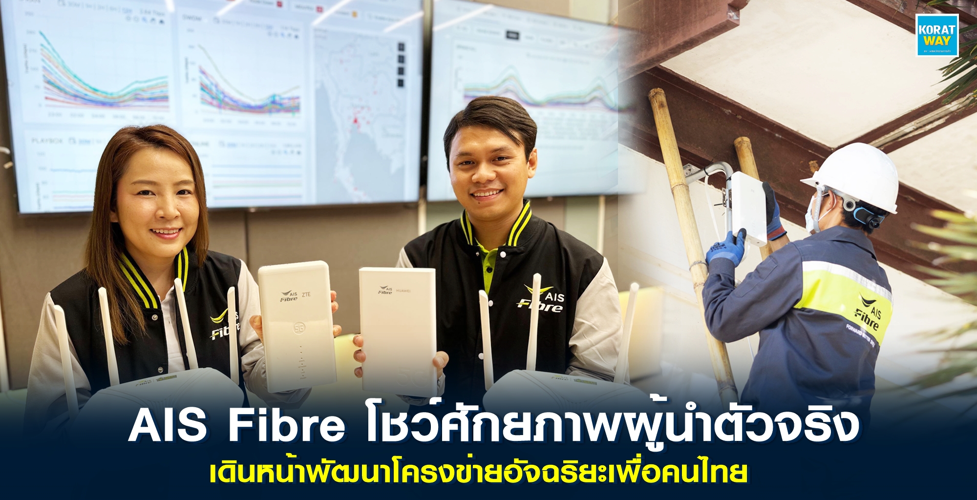 โดยเราได้ผสานการทำงานอย่างไร้รอยต่อผ่านการใช้ขีดความสามารถของ AIS ร่วมกันทำงานเพื่อยกระดับการให้บริการ ที่แม้จะเป็นพื้นที่ที่มีข้อจำกัดของการเดินสายไฟเบอร์ออพติก แต่ก็ยังมีความพร้อมให้ลูกค้าได้สัมผัสกับการใช้งานเน็ตบ้านที่ดีที่สุดจากเรา ด้วยการนำคลื่นความถี่ 26 GHz ที่ได้จากการประมูลซึ่งมีจุดเด่นในเรื่องของความเร็วกว่าทุกย่านความถี่ มาเปิดให้บริการอินเทอร์เน็ตความเร็วสูงของแบบไร้สายด้วยเทคโนโลยี 5G mmWave หรือ 5G Millimeter wave เป็นครั้งแรกในไทย ที่ใช้งานได้จริงแล้ววันนี้”