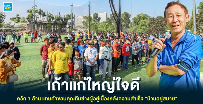 >> เถ้าแก่ใหญ่ใจดี “เฮียเฮง” นายวิวัฒน์ วัฒนสินศักดิ์ นักธุรกิจบ้านจัดสรรรายใหญ่โคราช ในเครือโครงการบ้านอยู่สบาย มอบ 1 ล้านบาท ให้ทีมช่าง เพื่อแทนคำขอบคุณผู้อยู่เบื้องหลังความสำเร็จ “บ้านอยู่สบาย”
