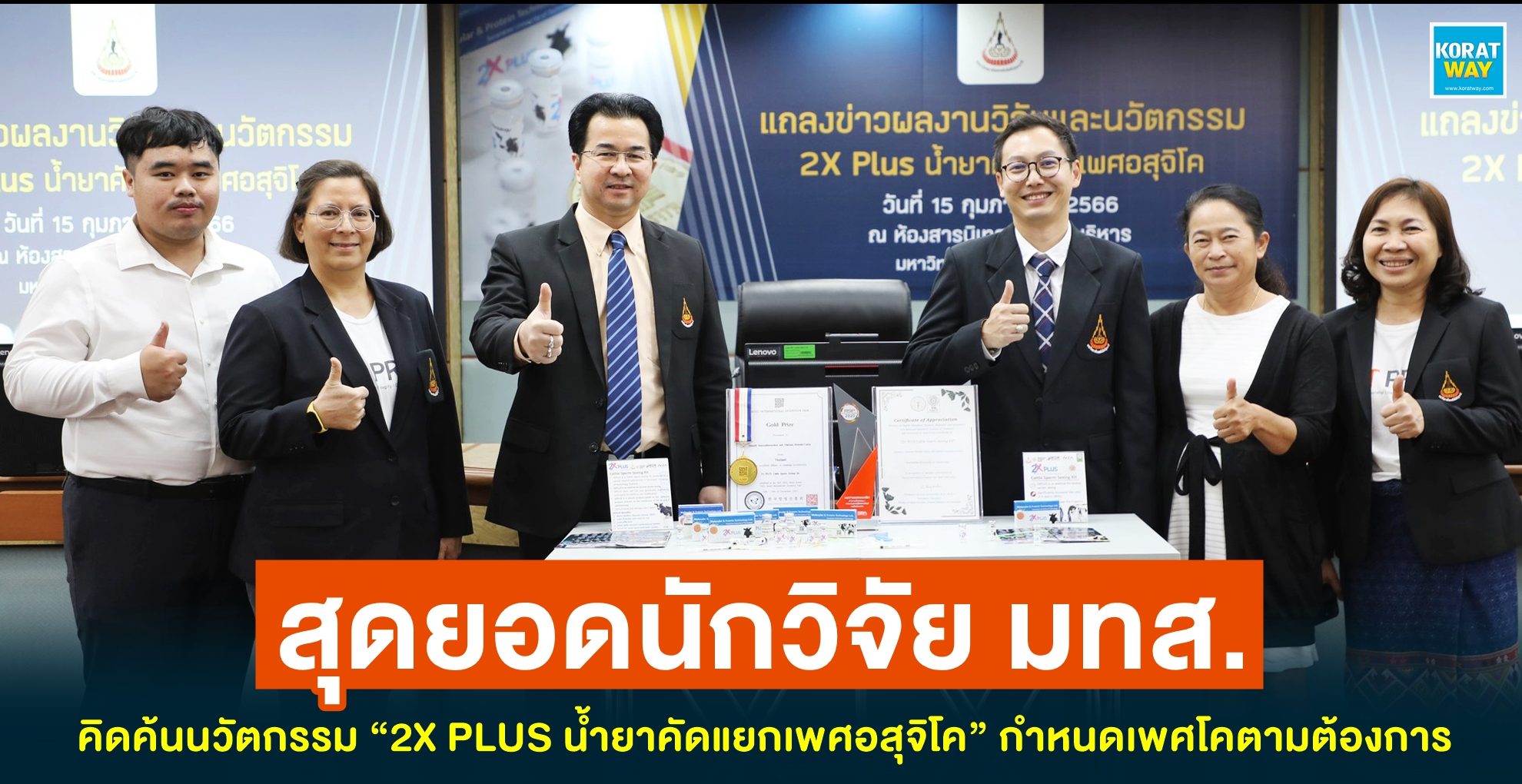 นักวิจัยสาขาวิชาเทคโนโลยีชีวภาพ สำนักวิชาเทคโนโลยีการเกษตร มทส. คิดค้นน้ำยาคัดแยกเพศอสุจิโค สร้างองค์ความรู้ใหม่ประสบผลสำเร็จสามารถกำหนดเพศได้ตามต้องการถึง 80 เปอร์เซ็นต์ ช่วยเกษตรกรผู้เลี้ยงโคเพิ่มจำนวนประชากรโคเพศเมียมากขึ้นตามต้องการ ใช้งานง่าย ประหยัดเวลา ลดการสูญเสีย เพิ่มโอกาสการสร้างรายได้และกำไร พัฒนาผลิตภัณฑ์สู่มาตรฐานเป็นที่ยอมรับในระดับสากล