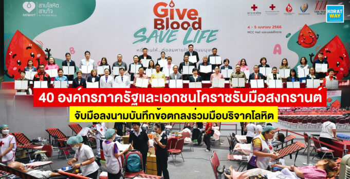 40 องค์กรภาครัฐและเอกชนในโคราช สานพลังร่วมลงนามในพิธีบันทึกข้อตกลงความร่วมมือบริจาคโลหิตภายใต้โครงการ “MHeart สายโลหิต สายใจ” จัดหาโลหิตเพื่อสำรองใช้ในช่วงเทศกาลสงกรานต์นี้