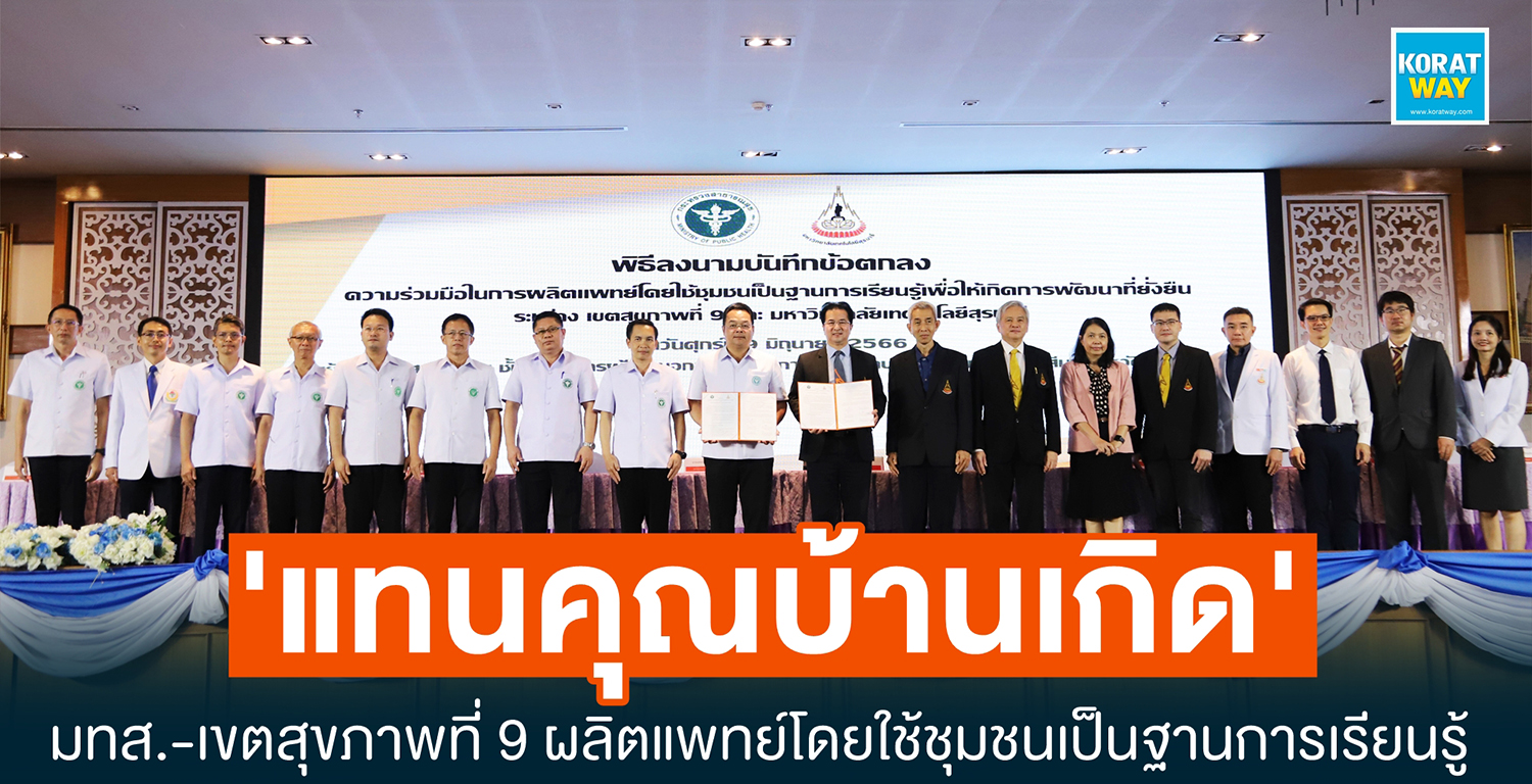 โดยมี รองศาสตราจารย์ ดร.อนันต์ ทองระอา อธิการบดี มทส. และ นายแพทย์ภูวเดช สุระโคตร ผู้ตรวจราชการกระทรวงสาธารณสุข เขตสุขภาพที่ 9 พร้อมด้วย สาธารณสุขนิเทศก์ ผู้อำนวยการสำนักงานเขตสุขภาพที่ 9 นายแพทย์สาธารณสุขจังหวัดนครราชสีมา สุรินทร์ บุรีรัมย์ ชัยภูมิ ผู้อำนวยการโรงพยาบาลสุรินทร์ บุรีรัมย์ ชัยภูมิ และโรงพยาบาลมหาราชนครราชสีมา รองอธิการบดีฝ่ายวิชาการและประกันคุณภาพ คณบดีสำนักวิชาแพทยศาสตร์ และคณะผู้บริหาร มทส. ร่วมในพิธีลงนาม วันที่ 9 มิถุนายน 2566 ณ ห้องประชุมสวนหม่อน ชั้น 7 อาคารผู้ป่วยนอกและอำนวยการ โรงพยาบามหาราชนครราชสีมา จังหวัดนครราชสีมา