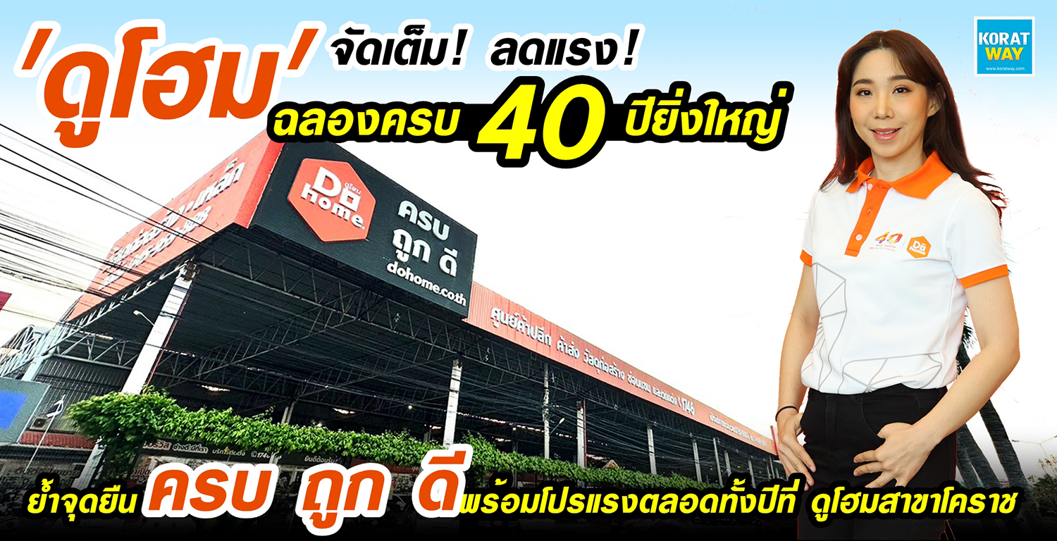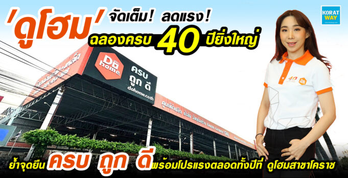 ยิ่งใหญ่จัดเต็มกับ มหกรรมฉลองครบรอบ 40 ปี ดูโฮม ภายใต้คอนเซ็ปต์ Better Together ครบ ถูก ดี ตลอดไป สำหรับพี่น้องชาวโคราช ซึ่งเป็นหนึ่งในจังหวัดใหญ่ของภูมิภาคตะวันออกเฉียงเหนือที่เรียกกันว่า ‘ประตูสู่อีสาน’ ดูโฮม สาขานครราชสีมา ศูนย์จำหน่ายวัสดุก่อสร้างและตกแต่งบ้านแบบครบวงจร (One-stop Home Products Destination) ที่รู้จักกันในนาม “มหาอาณาจักรบ้าน” ย้ำจุดแข็งตอบโจทย์ครบทุกกลุ่มสินค้า ทั้งวัสดุก่อสร้าง ซ่อมแซม และตกแต่งบ้าน พร้อมจัดโปรคืนกำไรให้ลูกค้า อัดโปรหนักตลอดปี ช้อปครบลุ้นรับรถกระบะ,รถจักรยายนต์ และของรางวัลอื่นๆ รางวัลรวมมูลค่ากว่า 3 ล้านบาท* พร้อมร่วมสนุกกับกิจกรรมพิเศษมากมาย