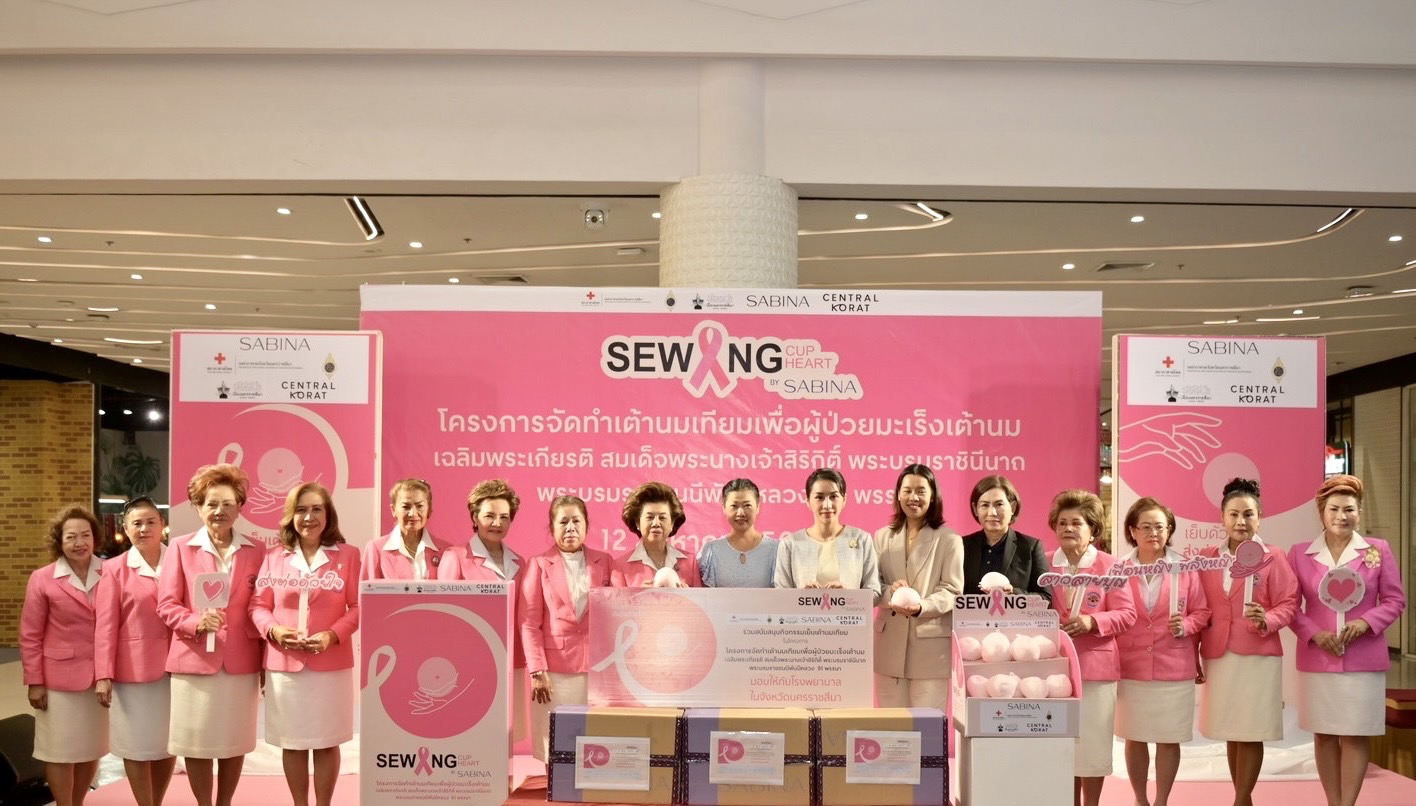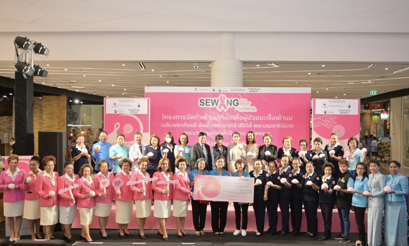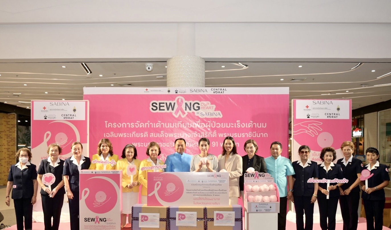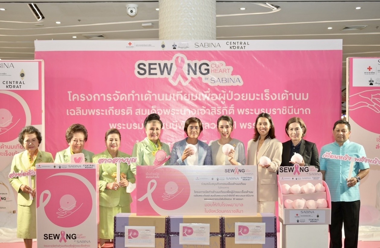 จังหวัดนครราชสีมา กาชาดจังหวัดนครราชสีมา ชมรมแม่บ้านมหาดไทยจังหวัดนครราชสีมา ร่วมกับบริษัท ซาบีน่า จำกัด (มหาชน) และเซ็นทรัล โคราช มอบเต้านมเทียมมากกว่า 1,500 ชิ้น สู่โรงพยาบาล 20 แห่งในจังหวัดนครราชสีมา เย็บเต้ารวมใจ สู้ภัยมะเร็ง เฉลิมพระเกียรติสมเด็จพระนางเจ้าสิริกิติ์ พระบรมราชินีนาถ พระบรมราชชนนีพันปีหลวง 91 พรรษา
