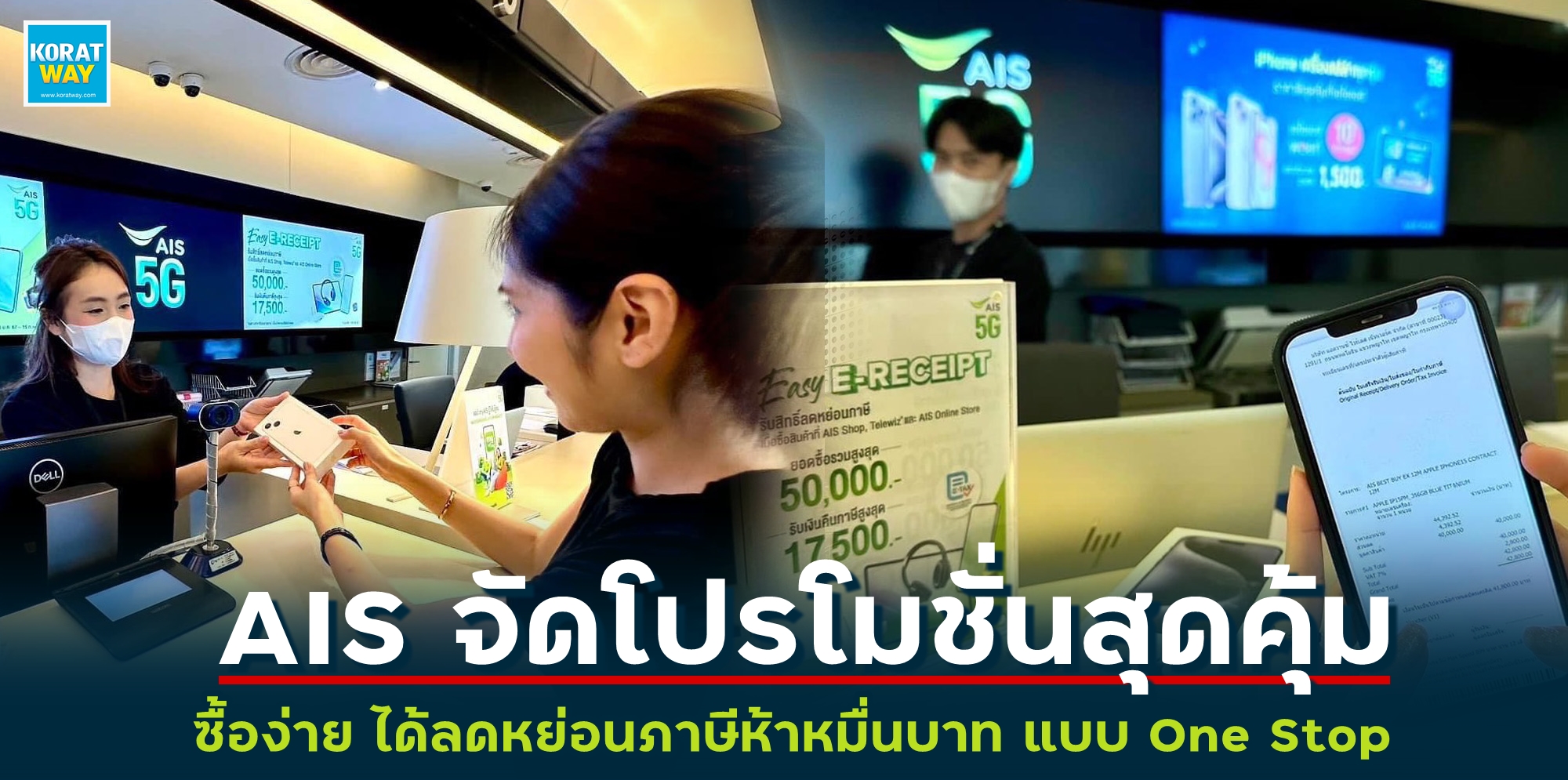 AIS ตอบรับนโยบายภาครัฐ ชวนช้อปกระตุ้นเศรษฐกิจรับศักราชใหม่ 2567 ในโครงการ “Easy E-Receipt”แบบ One Stop ช้อปกับ AIS แห่งเดียวได้ทั้งส่วนลด พร้อมเข้าเกณฑ์ลดหย่อนภาษี แบบไม่ต้องเสียเวลาช้อปหลายแห่ง โดยให้ลูกค้าสามารถซื้อสินค้าทั้งสมาร์ทโฟน 5G หรือแม้แต่เก็ตเจตดีไวซ์ พร้อมแพ็กเกจส่วนลดสุดคุ้ม กับ AIS และขอรับ e-Tax Invoice หรือ e-Receipt เพื่อนำไปใช้สิทธิ์ลดหย่อนภาษีเงินได้บุคคลธรรมดา สูงสุดถึง 50,000 บาท ได้ตั้งแต่วันนี้ จนถึง 15 กุมภาพันธ์ 2567 ที่ AIS Shop ทุกสาขา หรือ Telewiz (เฉพาะสาขาที่ร่วมรายการ) และ AIS Online Store