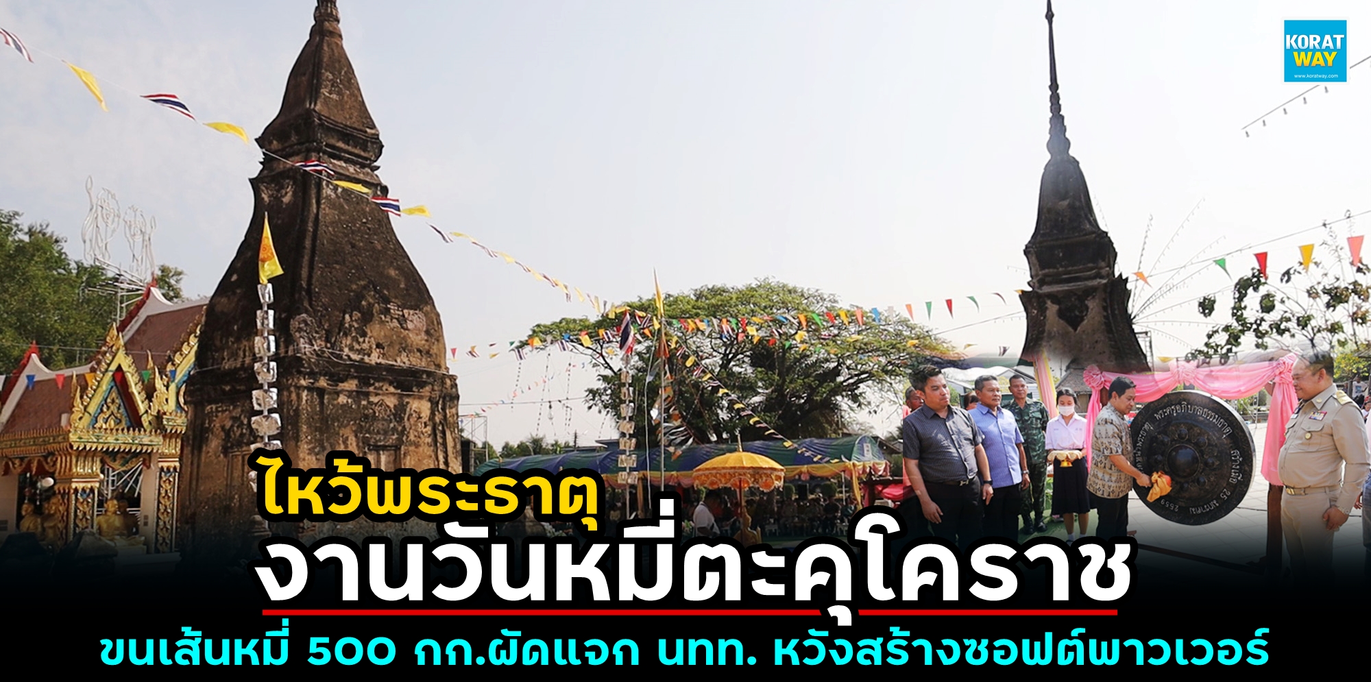 (23กพ67)ที่วัดหน้าพระธาตุ บ้านตุคุ ม.1 ต.ตะคุ อ.ปักธงชัย จ.นครราชสีมา นายสามารถ สุวรรณมณี ปลัดจังหวัดนครราชสีมา เป็นประธานในพิธีเปิดงานไหว้พระธาตุและงานวันหมี่ตะคุ ประจำปี 2567 เพื่ออนุรักษ์สืบสานวัฒนธรรม ประเพณีอันดีงามของชุมชน ส่งเสริมแหล่งท่องเที่ยวเชิงวัฒนธรรม โบราณสถานวัดหน้าพระธาตุ ต.ตะคุ อ.ปักธงชัย