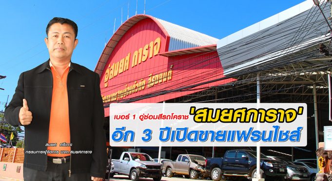 นายสมยศ กล่าวทิ้งท้ายอีกว่า ในอีก 3 ปีข้างหน้าเราได้เตรียมแผนจะขยายธุรกิจอู่ซ่อมรถออกไปอีกในรูปแบบของแฟรนไชส์ เพื่อให้ผู้ที่สนใจมาร่วมทุนทำธุรกิจกับเรา ซึ่งขณะนี้กำลังอยู่ในช่วงการพัฒนาระบบ ส่วนใครที่สนใจจะซื้อแฟรนไชส์จะต้องมีทำเลที่ตั้งเป็นไปตามที่เรากำหนด และมีศักยภาพพอที่จะเปิดให้บริการอู่ซ่อมรถ