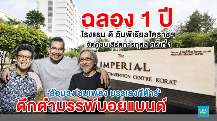 ฉลองครบ 1 ปี โรงแรม ดิ อิมพีเรียล โฮเทล แอนด์ คอนเวนชั่น เซ็นเตอร์ โคราช เตรียมจัดงานใหญ่คืนกำไรสู่สังคม กับคอนเสิร์ตการกุศล ครั้งที่ 1 “ล้อมวง ชมเพลง บรรเลงกีต้าร์ โดยวงดึกดำบรรพ์บอยแบนด์” สนุกสนานกับนักร้องพลังเสียงคุณภาพรุ่นเก๋า “ปั่น-แต๋ม-ตุ่น” จองด่วนโต๊ะละ 10,000 บาท รายได้มอบให้กาชาดเพื่อนำไปช่วยเหลือผู้ด้อยโอกาสและยากจน