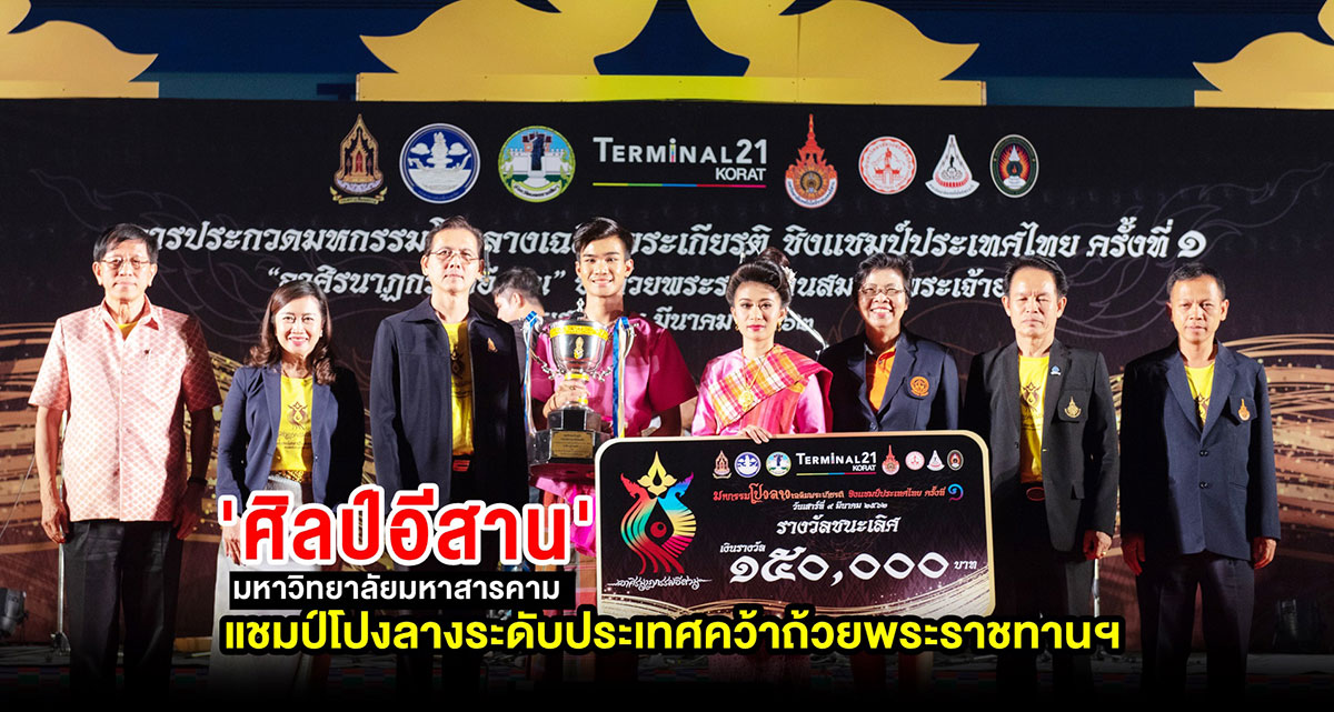 ปิดฉากความยิ่งใหญ่มหกรรมการแข่งขันโปงลางเฉลิมพระเกียรติชิงแชมป์ประเทศไทย ครั้งที่ 1 “อาศิรนาฏกรรมอีสาน” ม.สารคามโชว์สุดยอดโปงลางโดนใจกรรมการ คว้าแชมป์ระดับประเทศ พร้อมถ้วยพระราชทานสมเด็จพระเจ้าอยู่หัว พร้อมเงินรางวัลร่วมแสนบาท
