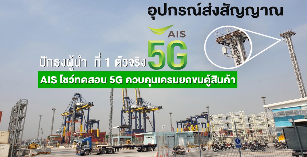 เอไอเอส ผู้นำอันดับ 1 ด้านนวัตกรรมเครือข่ายและเทคโนโลยีของประเทศ ทดสอบการนำเทคโนโลยี 5G มาประยุกต์ใช้ในกิจการท่าเทียบเรือขนส่งสินค้า เพื่อให้ผู้ปฏิบัติงานสามารถควบคุมเครนยกตู้สินค้าได้จากระยะไกล ผ่านโครงข่าย 5G ณ ท่าเทียบเรือฮัทชิสัน พอร์ท ประเทศไทย ท่าเรือแหลมฉบัง อ.ศรีราชา จ.ชลบุรี ได้เป็นรายแรกของไทยและเอเชียตะวันออกเฉียงใต้ ภายใต้การสนับสนุนของ กสทช.