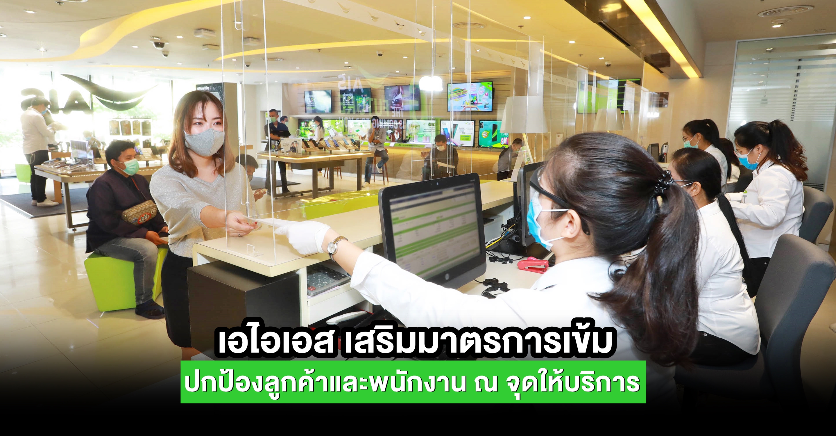เอไอเอส ยกระดับมาตรการดูแลความปลอดภัยลูกค้าและพนักงานไปอีกขั้น ท่ามกลางสถานการณ์การแพร่ระบาดของโรคติดเชื้อไวรัสโคโรนา (COVID-19)  พร้อมส่งมอบความห่วงใยกับมาตรการเข้มด้วยการติดตั้งแผงกั้นอะคริลิคใส ณ เคาน์เตอร์บริการ เพื่อปกป้องและเพิ่มระยะห่าง (Social Distancing) ระหว่างลูกค้าที่มารับบริการ ณ จุด Touch Point กับ พนักงาน เพื่อลดความเสี่ยง และสร้างความอุ่นใจให้กับลูกค้าระหว่างทำธุรกรรมต่างๆ ภายใน AIS Shop, Serenade Club และ ร้าน AIS Telewiz