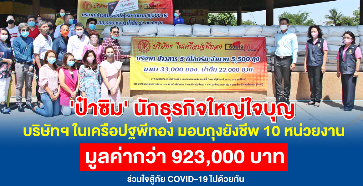 “ป๋าซิม” นายทรงศักดิ์  อุไรธรากุล ประธานกรรมการ บริษัทฯ ในเครือปฐพีทอง เปิดเผยว่า เราได้เล็งเห็นความความลำบากของพี่น้องประชาชนในช่วงการแพร่ระบาดของเชื้อไวรัส COVID-19 ทางบริษัทฯ ในเครือปฐพีทอง จึงขอเป็นส่วนหนึ่งในการ  “ร่วมใจสู้ภัย COVID-19“ โดยการบริจาคถุงยังชีพ จำนวน 5,500 ชุด มูลค่ากว่า 923,000 บาท ให้กับหน่วยงานราชการและชุมชน จำนวนทั้งสิ้น 10 หน่วยงาน นำไปแจกจ่ายให้กับประชาชนในพื้นที่ เพื่อแบ่งปันน้ำใจ และบรรเทาความทุกยาก ให้กับผู้ที่ได้รับผลกระทบจากการแพร่ระบาดของไวรัส COVID-19  โดยได้ทำพิธีมอบมอบถุงยังชีพเมื่อวันที่ 28-29 เมษายน 2563