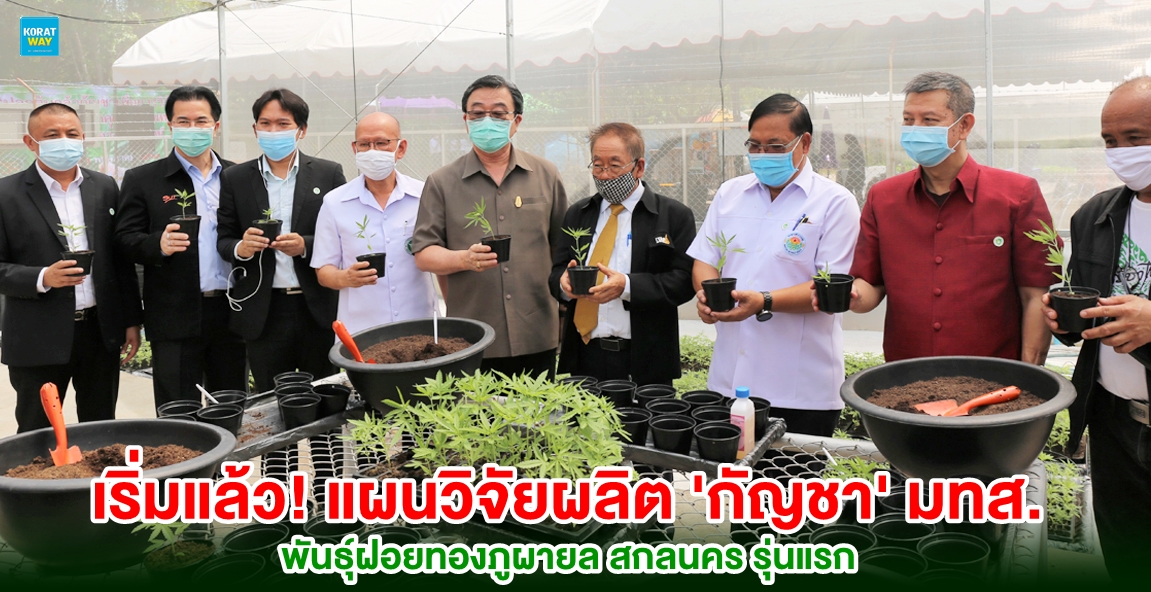 13 พฤษภาคม 2563 มหาวิทยาลัยเทคโนโลยีสุรนารี (มทส.) ได้ฤกษ์ย้ายต้นกล้ากัญชาพันธุ์ฝอยทองภูผายล สกลนคร รุ่นแรก หลังได้รับอนุญาตจากสำนักงานคณะกรรมการอาหารและยา (อย.) ตามแผนการผลิตกัญชาเชิงคุณภาพเพื่อใช้ประโยชน์ทางการแพทย์ เข้าพื้นที่ภายในโรงเรือนระบบปิดตามมาตรฐานสากล เพื่อผลิตวัตถุดิบกัญชา การตรวจสอบคุณภาพ การใช้พื้นที่แปรรูป เพื่อใช้ผลิตยาสมุนไพรไทย 9 ตำรับเชิงพาณิชย์เพิ่มมูลค่าทางเศรษฐกิจ เผยดำเนินการอย่างรัดกุมภายใต้ข้อกำหนดและการกำกับดูแลของคณะกรรมการตรวจสอบฯ ปลูก 3,360 ต้นต่อรอบการผลิต คาดเก็บเกี่ยวรอบแรก เดือนกรกฎาคม – สิงหาคมนี้