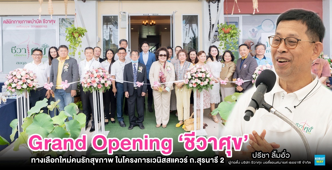 Grand Opening เปิดทางเลือกใหม่คนรักสุขภาพ “ชีวาศุข” พร้อมจับมือ “แพทย์แผนจีนหัวเฉียว” สร้างสมดุลทางเลือกสุขภาพ 2 รูปแบบ ตั้งอยู่ในโครงการเวนิสสแควร์ ถ.สุรนารี 2 อ.เมือง จ.นครราชสีมา ข่าวดี! เปิดให้บริการฟรี! สำหรับพระและแม่ชี ด้านปรีชา ลิ้มอั่ว เผย เคสประทับใจได้ดูแลอาการ “น้องเนย” ฮีโร่บิ๊กไบค์ ที่เข้ามารักษาจนอาการดีขึ้น พร้อมจัดแคมเปญฉลอง “วันแม่” ตลอดเดือนสิงหาคม “ชีวาศุข” มอบส่วนลดทันที 50 %