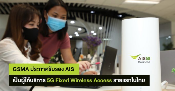 GSMA สมาคมผู้ให้บริการเครือข่ายโทรคมนาคมที่มีสมาชิกมากกว่า 800 รายทั่วโลก ประกาศรับรองให้ AIS เป็นผู้ให้บริการรายแรกและรายเดียวในไทยที่ให้บริการ 5G Fixed Wireless Access เชิงพาณิชย์อย่างเป็นทางการ ด้วยประสิทธิภาพของ 5G ในการรองรับการใช้งานได้หลากหลาย ตอบโจทย์กลุ่มลูกค้าองค์กร เป็นการต่อยอดเทคโนโลยีของ AIS 5G ให้สอดคล้องและยืดหยุ่นกับลักษณะการใช้งานแต่ละรูปแบบ แต่ละพื้นที่ของธุรกิจได้อย่างคล่องตัว ด้วย 4 ศักยภาพที่โดดเด่น ประกอบด้วย 1. อินเทอร์เน็ตความเร็วสูง (Higher Speed) 2. การตอบสนองอย่างรวดเร็ว (Better Latency) 3. การติดตั้งพร้อมใช้งานทันที (Fast to Set Up) และ 4. สะดวกในการใช้งานได้ทุกที่ที่มีสัญญาณ 5G (Easy to Relocate)