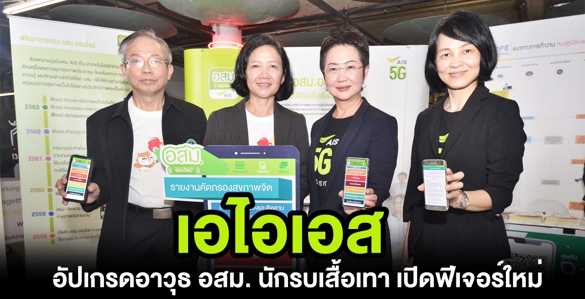 สานต่อภารกิจ “5G ฟื้นฟูประเทศ” เอไอเอส ผนึกกำลัง กรมสุขภาพจิต และกรมสนับสนุนบริการสุขภาพ อัปเกรดแอปพลิเคชัน อสม. ออนไลน์ เปิดฟีเจอร์ใหม่ “รายงานคัดกรองสุขภาพจิต” เป็นอาวุธคู่กาย อสม. ในการลงพื้นที่เฝ้าระวัง ตรวจคัดกรอง และให้คำแนะนำการปฏิบัติตนสำหรับผู้ที่มีความวิตกกังวล ซึมเศร้าได้ทันที
