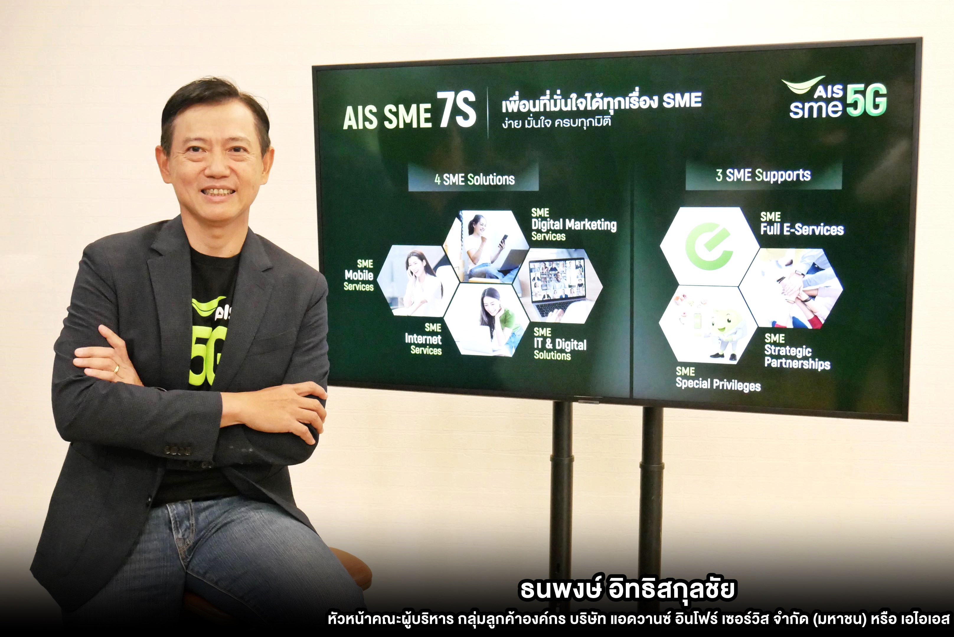 นายธนพงษ์ อิทธิสกุลชัย หัวหน้าคณะผู้บริหาร กลุ่มลูกค้าองค์กร บริษัท แอดวานซ์ อินโฟร์ เซอร์วิส จำกัด (มหาชน) หรือ เอไอเอส กล่าวว่า “ที่ผ่านมา ภาคธุรกิจถูก Disrupt โดยเทคโนโลยีดิจิทัล ที่ค่อยๆ เข้ามาปรับเปลี่ยนพฤติกรรมของผู้บริโภค รวมถึงสร้างโอกาสทางธุรกิจในรูปแบบใหม่ (New Business Model) ไปพร้อมกัน และชัดเจนยิ่งขึ้นเมื่อเกิดภาวะการระบาดจาก COVID–19 ในปีที่ผ่านมาจนถึงปัจจุบัน ซึ่งนอกจากจะเป็นมหันตภัยที่สร้างความเสียหาย และเปลี่ยนรูปแบบการใช้ชีวิตไปโดยสิ้นเชิงแล้ว สำหรับภาคธุรกิจ โดยเฉพาะผู้ประกอบการรายย่อย หรือ SME ที่แม้จะเป็นกลุ่มธุรกิจแรกๆ ที่ได้รับผลกระทบโดยตรง ทั้งจากมาตรการล็อกดาวน์ประเทศ และภาวะเศรษฐกิจตกต่ำ แต่ก็นำมาซึ่งโอกาสที่จะปรับเปลี่ยนรูปแบบการทำธุรกิจด้วยเครื่องมือดิจิทัลโซลูชัน หรือออนไลน์ เข้ามาเป็นส่วนผสมใหม่ของการดำเนินธุรกิจให้อยู่รอดและสร้างการเติบโตได้อย่างยั่งยืนเช่นกัน”