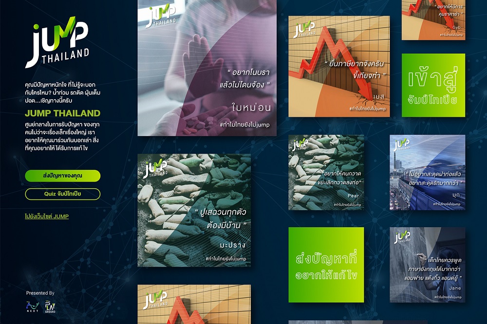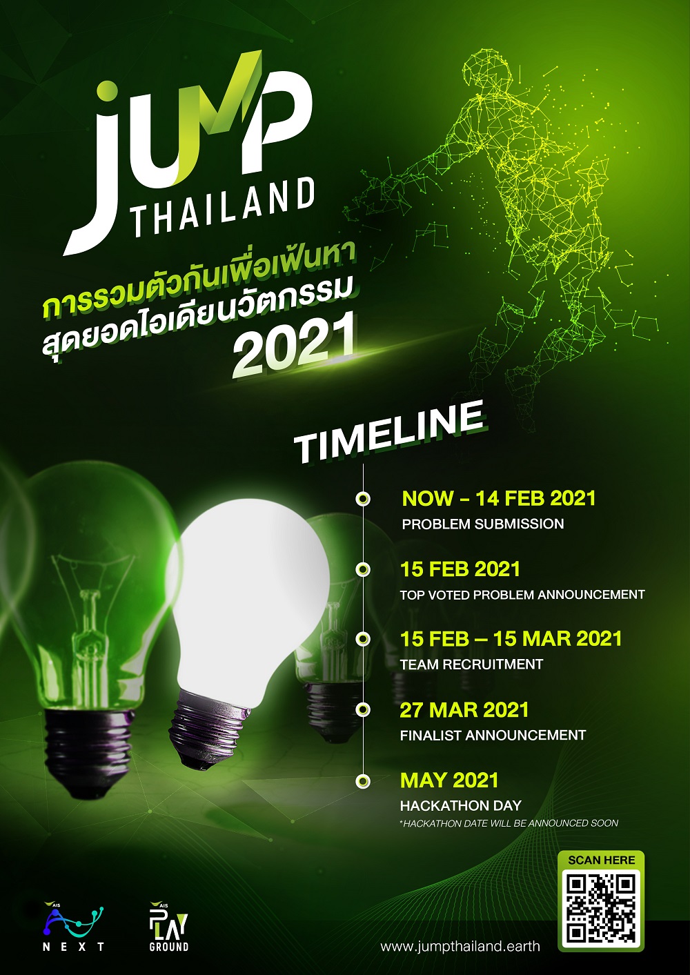 ผู้สนใจโครงการ JUMP THAILAND สามารถติดตามรายละเอียดเพิ่มเติม และร่วมส่งหัวข้อปัญหาที่คิดว่าควรเร่งแก้ไขที่สุดได้ตั้งแต่วันนี้ – ถึง 14 ก.พ. 2564 ที่เฟซบุ๊กเพจ JumpThailand และเว็บไซต์ jumpthailand.earth