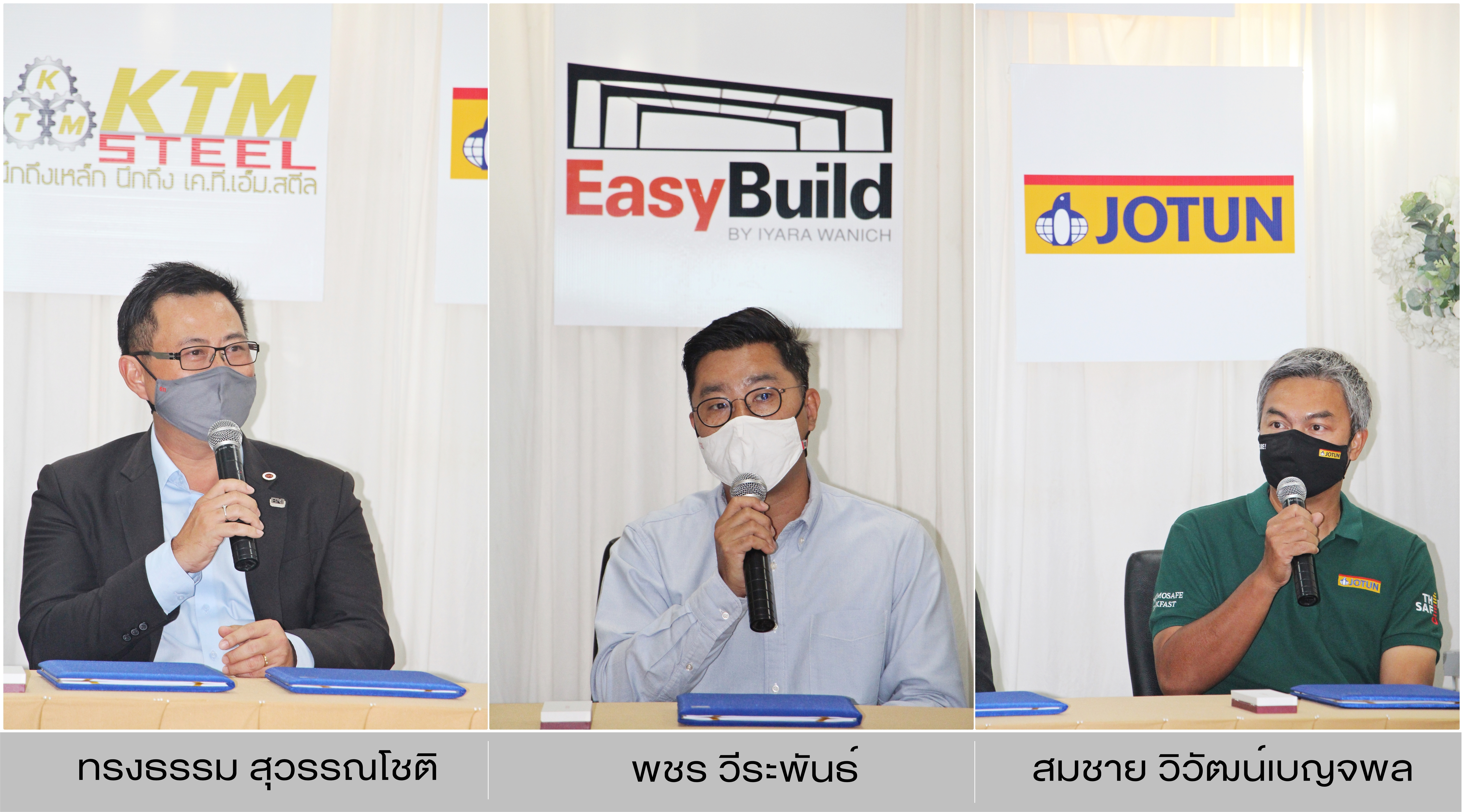 K.T.M. Steel จับมือกับ 2 บริษัทชื่อดัง “ไอยราวาณิชย์” ผู้นำโครงสร้างเหล็กสำเร็จรูป และ “โจตันไทย” ผู้นำสีอุตสาหกรรมฯรายใหญ่ เดินหน้าบุกตลาดเต็มรูปแบบ มุ่งสู่การเป็นผู้นำด้านอุตสาหกรรมโครงสร้างเหล็กระดับท็อปของโคราชและภาคอีสาน