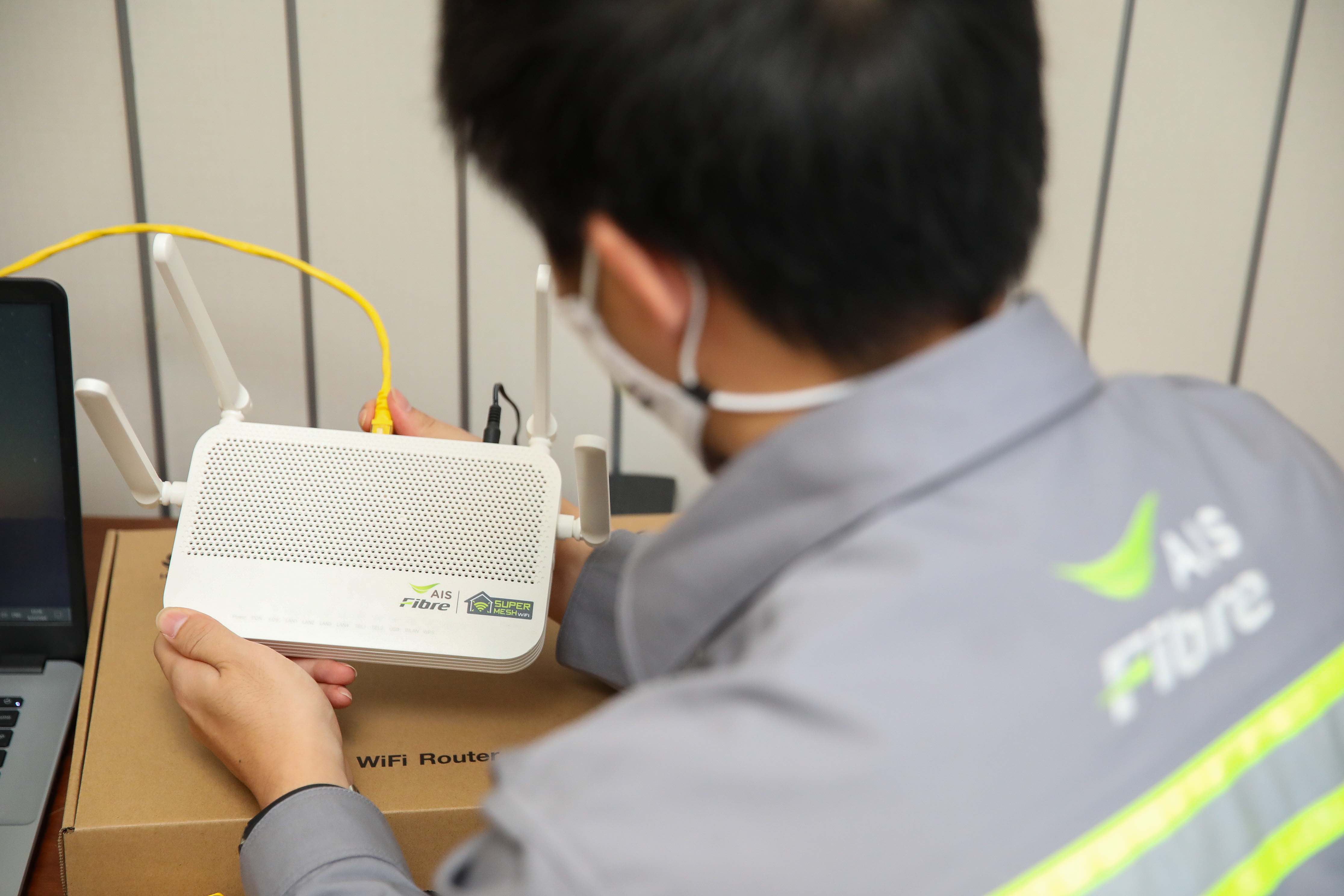 –มาพร้อม SuperMESH WiFi Router มาตรฐานใหม่ของเราท์เตอร์เมืองไทย ซึ่งถือเป็นรายแรกและรายเดียว ที่พัฒนาเราท์เตอร์มาตรฐานจากเทคโนโลยีดีที่สุด โดยลูกค้าสามารถสมัครใช้บริการเสริม AIS Fibre MESH WiFi เพียงเดือนละ 100 บาทต่อจุด เชื่อมต่อทั้งบ้านเป็นโครงข่าย Mesh WiFi ช่วยกระจายสัญญาณให้เร็วแรง หมดปัญหาจุดอับสัญญาณภายในบ้าน กระจายสัญญาณเร็วแรง ครอบคลุมทั่วทุกห้องในบ้าน โดยทีมช่างติดตั้งผู้ชำนาญการ
