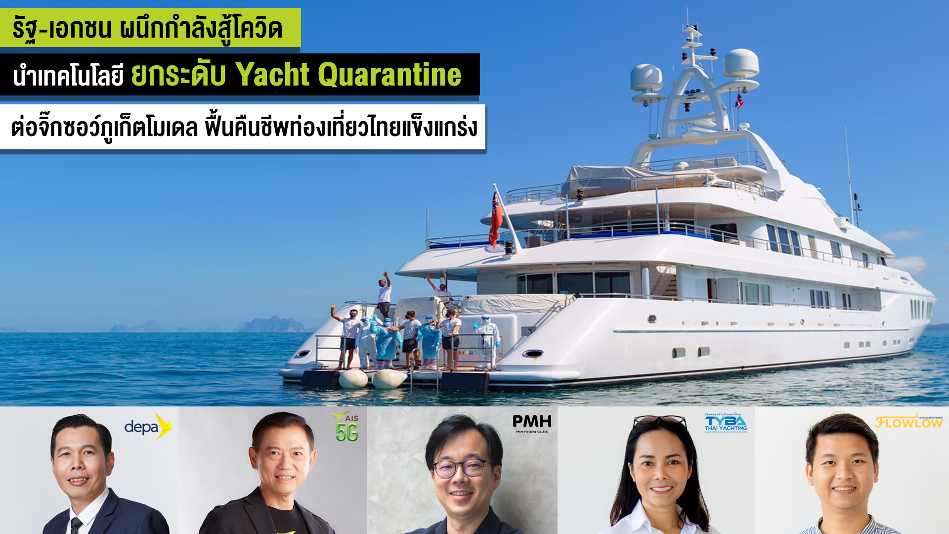 นางสาวตัญญุตา สิงห์มณี กรรมการผู้จัดการ บริษัท เอเชีย แปซิฟิค ซุปเปอร์ยอชท์ จำกัด ตัวแทนสมาคมธุรกิจเรือยอชต์ไทย (TYBA) กล่าวว่า “จากสถานการณ์การแพร่ระบาดโควิด-19 ตั้งแต่ปี 2563 ที่ผ่านมา ส่งผลกระทบต่อสมาชิกสมาคมฯอย่างหนัก เนื่องจากรายได้ส่วนใหญ่มาจากเรือยอชต์ต่างชาติ สูญเสียรายได้มากถึง 50– 60% เราจึงพยายามหาโซลูชั่นให้คนในธุรกิจเรือยอชต์ได้กลับมามีงานทำ จึงเป็นที่มาของโครงการกักตัวบนเรือยอชต์ ที่ได้ร่วมมือกับเอไอเอส, ดีป้า,PMH-ผู้ให้บริการ POMO กลุ่มผู้ประกอบการบริหารจัดการท่าเรือ ยกระดับ Digital Yacht Quarantine นี้ เชื่อว่าจะช่วยสร้างความเชื่อมั่นให้กับนักท่องเที่ยว และทุกภาคส่วนมีความสบายใจว่านักท่องเที่ยวที่เดินทางมากับเรือยอชต์นี้ผ่านการกักตัวที่ได้รับมาตรฐานจากระทรวงสาธารณสุข ซึ่งนับตั้งแต่เริ่มโครงการ Yacht Quarantine ในเดือนตุลาคม 2563 ที่ผ่านมา มีสถิติการติดเชื้อโควิดเป็นศูนย์ และนักท่องเที่ยวรู้สึกมีความสุขกับการกักตัวบนเรือ ทั้งนี้ คาดการณ์ว่าภายในปี 2564 นี้.จะมีนักท่องเที่ยวเดินทางเข้าประเทศไทยด้วยเรือยอชต์ประมาณ 100 ลำ จำนวนนักท่องเที่ยว 300–500 คน”
