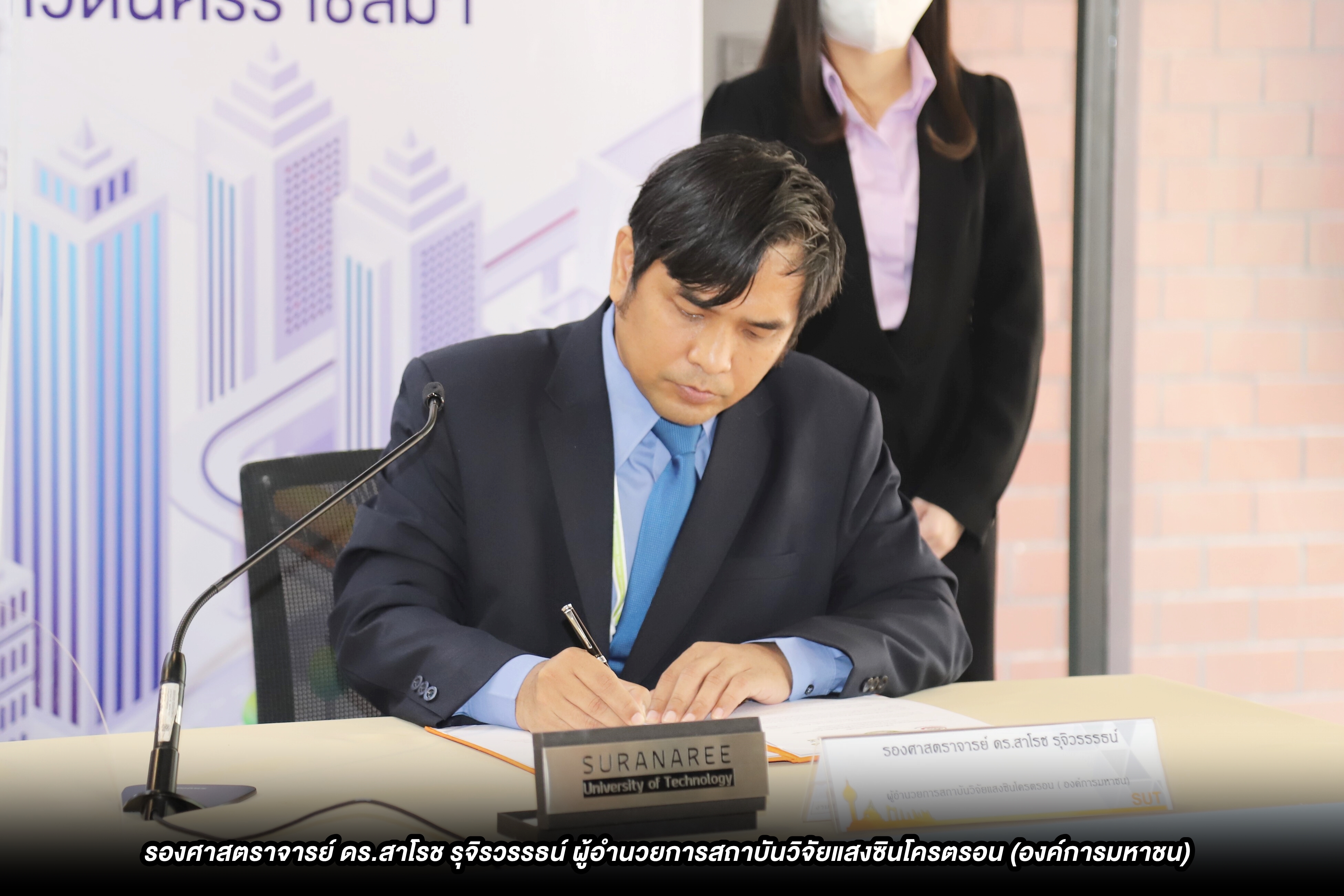 สำหรับความร่วมมือระหว่าง มทส. จังหวัดนครราชสีมา และสถาบันวิจัยแสงซินโครตรอน (องค์การมหาชน) ในครั้งนี้ จะร่วมส่งเสริมความร่วมมือทางวิชาการในด้านการใช้ประโยชน์จากแสงซินโครตรอน และเทคโนโลยีอื่นที่เกี่ยวข้อง นวัตกรรม รวมถึงเครื่องมือวิเคราะห์ทดสอบ และอุปกรณ์ต่าง ๆ สำหรับงานวิจัยและงานพัฒนาวิศวกรรมทางด้านแสงซินโครตรอนและเทคนิควิศวกรรมขั้นสูง ซึ่ง มทส. เป็นส่วนหนึ่งในการผลักดันและถ่ายทอดเทคโนโลยีและนวัตกรรมที่เป็นประโยชน์ต่อการพัฒนาจังหวัดนครราชสีมา เพื่อพัฒนาศักยภาพและยกระดับชุมชน กลุ่มอาชีพ กลุ่มวิสาหกิจชุมชน ตลอดจนผู้ประกอบการชุมชนท้องถิ่นในพื้นที่ โดยใช้องค์ความรู้ด้านวิทยาศาสตร์ ทรัพยากร รวมถึงเทคโนโลยีต่าง ๆ เพิ่มความเข้มข้นของการวิจัยและพัฒนา การถ่ายทอดเทคโนโลยีสู่ชุมชนอย่างเป็นระบบ อันส่งผลสู่เศรษฐกิจ การจ้างงาน และความเข้มแข็งของสังคมไทย รวมถึงการสร้างเครือข่ายความร่วมมือระหว่างหน่วยงานให้เกิดประโยชน์ร่วมกันอย่างแท้จริง”
