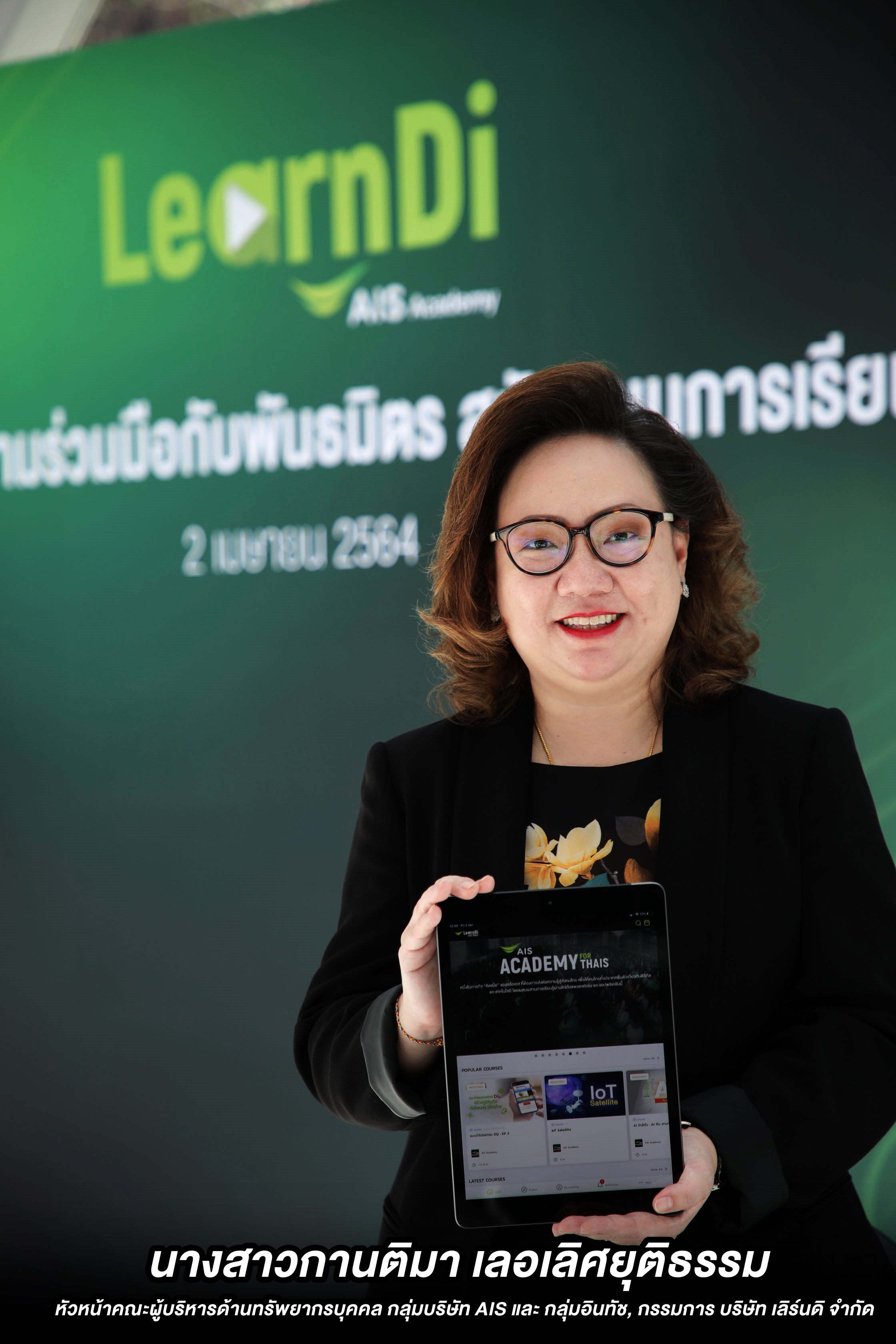 นางสาวกานติมา เลอเลิศยุติธรรม หัวหน้าคณะผู้บริหารด้านทรัพยากรบุคคล กลุ่มบริษัท AIS และ กลุ่มอินทัชกรรมการ บริษัท เลิร์นดิ จำกัด กล่าวว่า “ภายใต้บริบทโลกที่เปลี่ยนแปลงอยู่ตลอดเวลาอย่างไม่หยุดยั้ง   การเสริมสร้างศักยภาพบุคลากรเป็นเรื่องที่มีความสำคัญยิ่งต่อความสำเร็จขององค์กร เมื่อบริบทของการศึกษาที่เปลี่ยนไป  AIS Academy พร้อมพันธมิตร มีความพร้อมในการมีส่วนร่วมเพื่อขับเคลื่อนบุคลากรไทยในการสร้างองค์ความรู้ผ่านการนำส่งความรู้รูปแบบใหม่และผสานความสามารถทาง Digital เปิดโอกาสในการเข้าถึงองค์ความรู้อย่างหลากหลายเสริมศักยภาพขององค์กรไทยให้ก้าวทันการเปลี่ยนแปลง