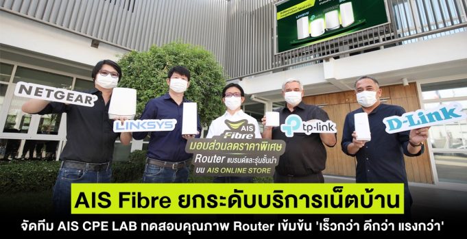 AIS Fibre ยกระดับบริการเน็ตบ้านไปอีกขั้น จัดทีม AIS CPE LAB ทดสอบคุณภาพ Router เข้มข้น เพื่อประสบการณ์ใช้งาน “เร็วกว่า ดีกว่า แรงกว่า” ร่วมผนึก 4 พันธมิตร พร้อม Router ชั้นนำ LINKSYS, TP-LINK, NETGEAR, D-LINK ที่ผ่านการทดสอบแล้ว มอบสิทธิความพิเศษจัดเต็มให้ลูกค้า!