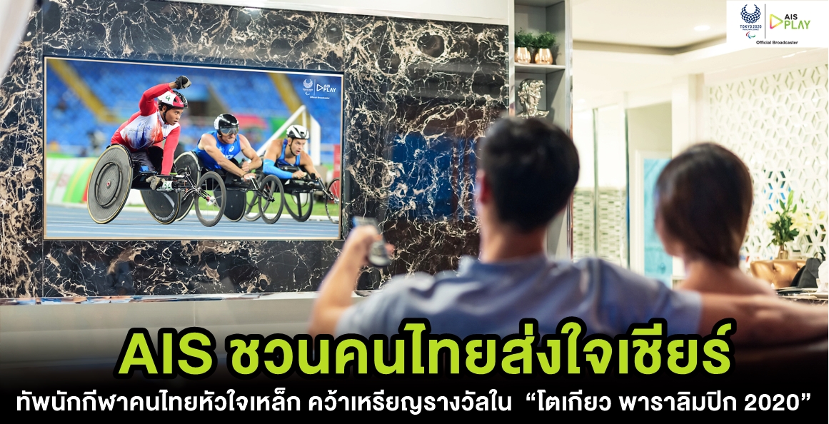 โดย AIS PLAY ได้เตรียมกว่า 7 ช่องกีฬา ให้คนไทยสามารถรับชมการถ่ายทอดสดมหกรรมการแข่งขันกีฬา โตเกียว พาราลิมปิก 2020 ร่วมส่งกำลังใจเชียร์นักกีฬาไทยทั้ง 77 คน ใน 14 ชนิดกีฬา และรวมถึงรายการการแข่งขันกีฬาประเภทต่างๆ ของนักกีฬาคนพิการทั่วโลกที่มากที่สุด ซึ่งจะประเดิมการถ่ายทอดสดพิธีเปิดในวันที่ 24 สิงหาคม 2564 เวลา 18.00 น. ยิงยาวการถ่ายทอดถึงวันที่ 5 กันยายน 2564 พร้อมไฮไลท์และรับชมย้อนหลังได้ฟรีทุกเครือข่าย ในทุกช่องทางของ AIS PLAY ทั้งบนมือถือและเว็บไซต์ พร้อมคอนเทนต์พิเศษสำหรับลูกค้า AIS ที่แอปพลิเคชั่นบนมือถือ, กล่อง AIS PLAYBOX, SAMSUNG Smart TV, Apple TV และเว็บไซต์ aisplay.ais.co.th