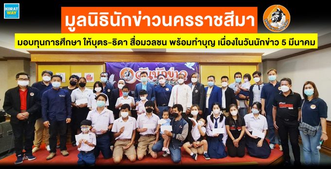 นายประสิทธิ์ ตั้งประเสริฐ ผู้สื่อข่าวหนังสือพิมพ์มติชน ประจำจังหวัดนครราชสีมา, ว่าที่ร้อยตรีประกาสิทธิ์ ดอนนอก กรรมการหอการค้าฯ และนายสถาพร คูประทุมศิริ กรรมการหอการค้า ได้ร่วมกันมอบทุนการศึกษาให้กับบุตร-ธิดา ของผู้สื่อข่าวในพื้นที่ จ.นครราชสีมา จำนวน 13 ทุน เนื่องในวันนักข่าว ประจำปี 2565